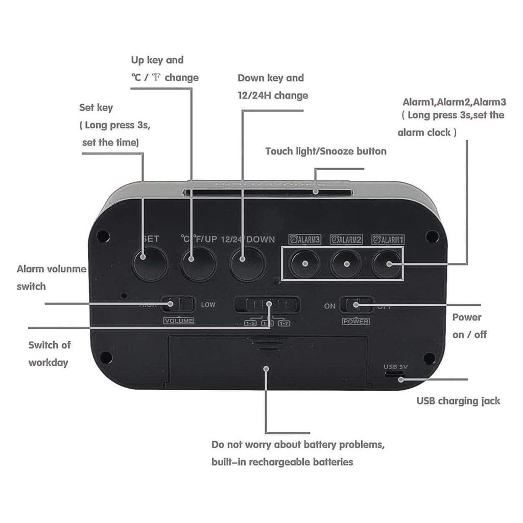• [ 3 ALARM OPTIONS ] – Need more alarm options to wake you up? Need more alarm options to remind you do something? Easy to set 3 alarms with this clock, you can see the 3 alarm time on the display clearly.