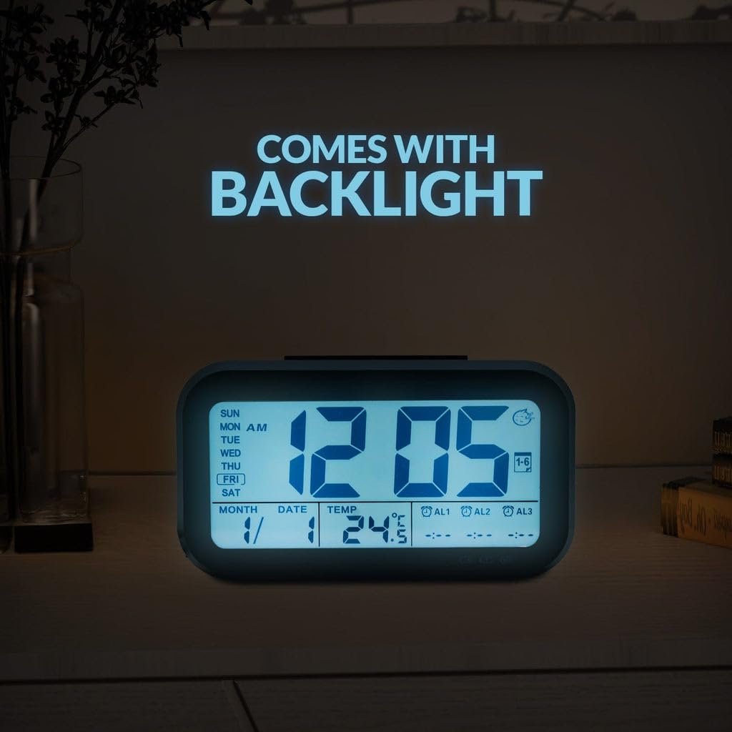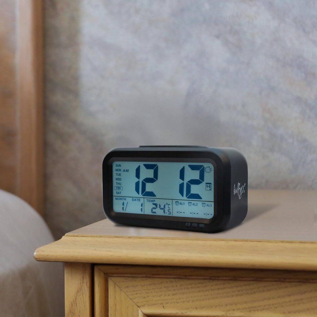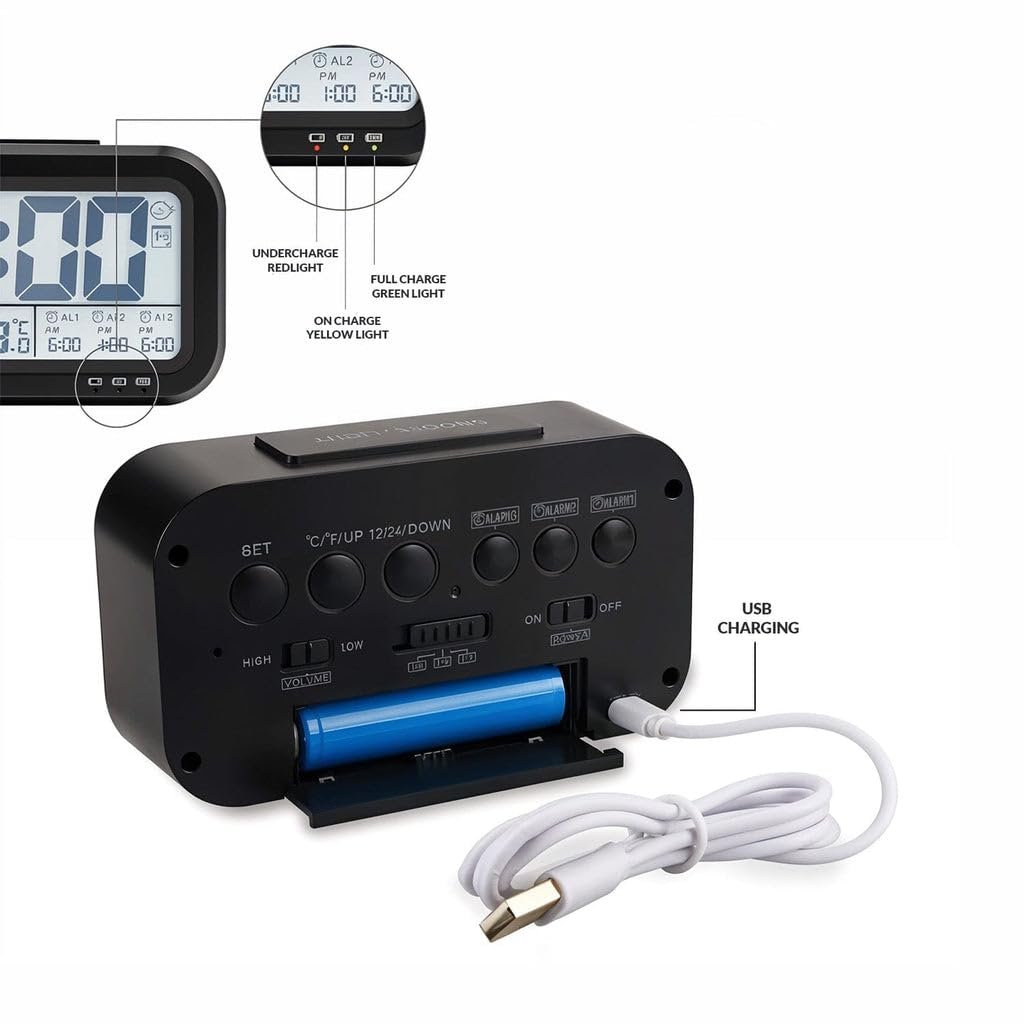 Bulfyss USB Rechargeable Digital Alarm Clock, Date, Temperature, Backlight LCD Display Smart Clock with 3 Alarms Bedroom Table Desk (Black)
