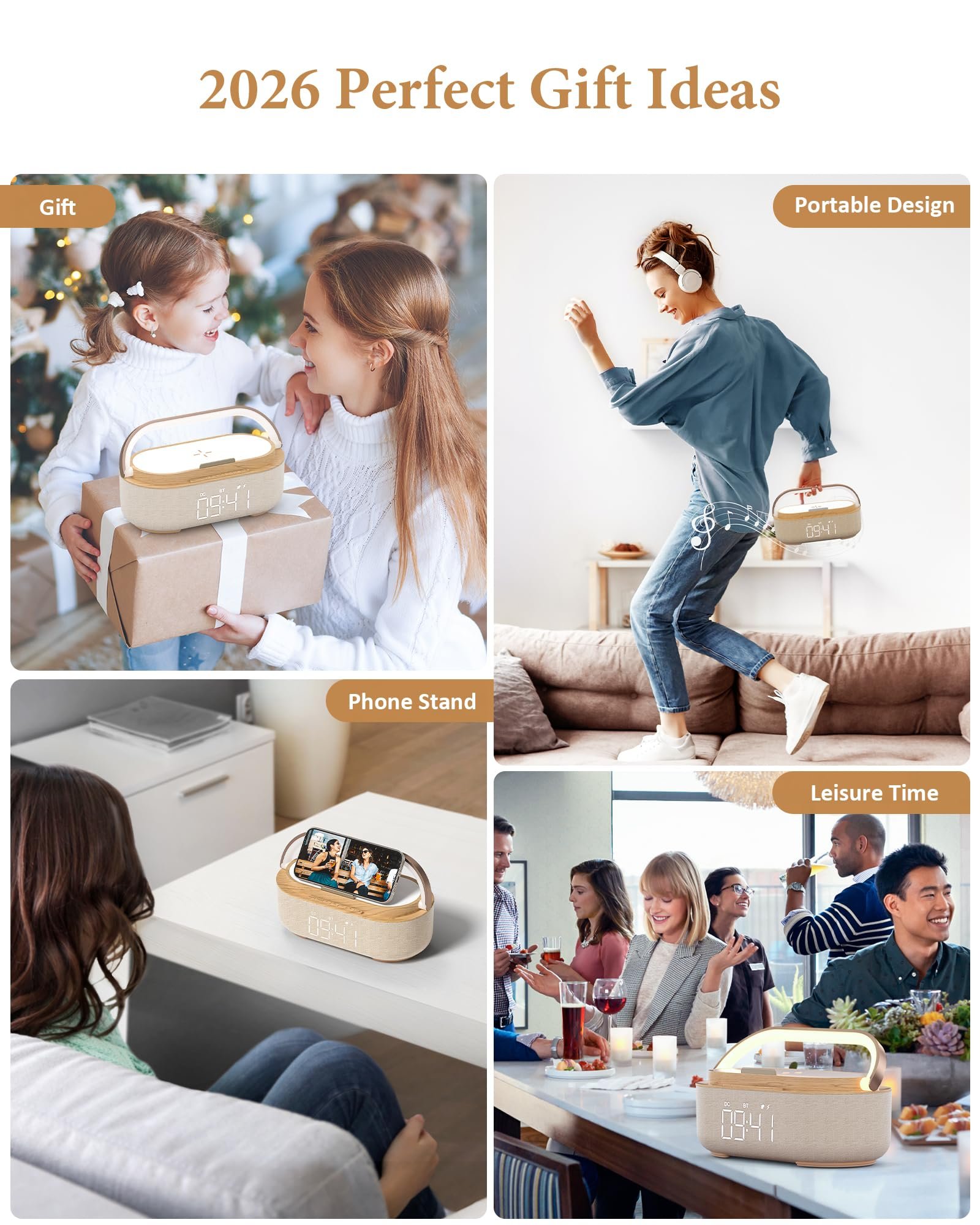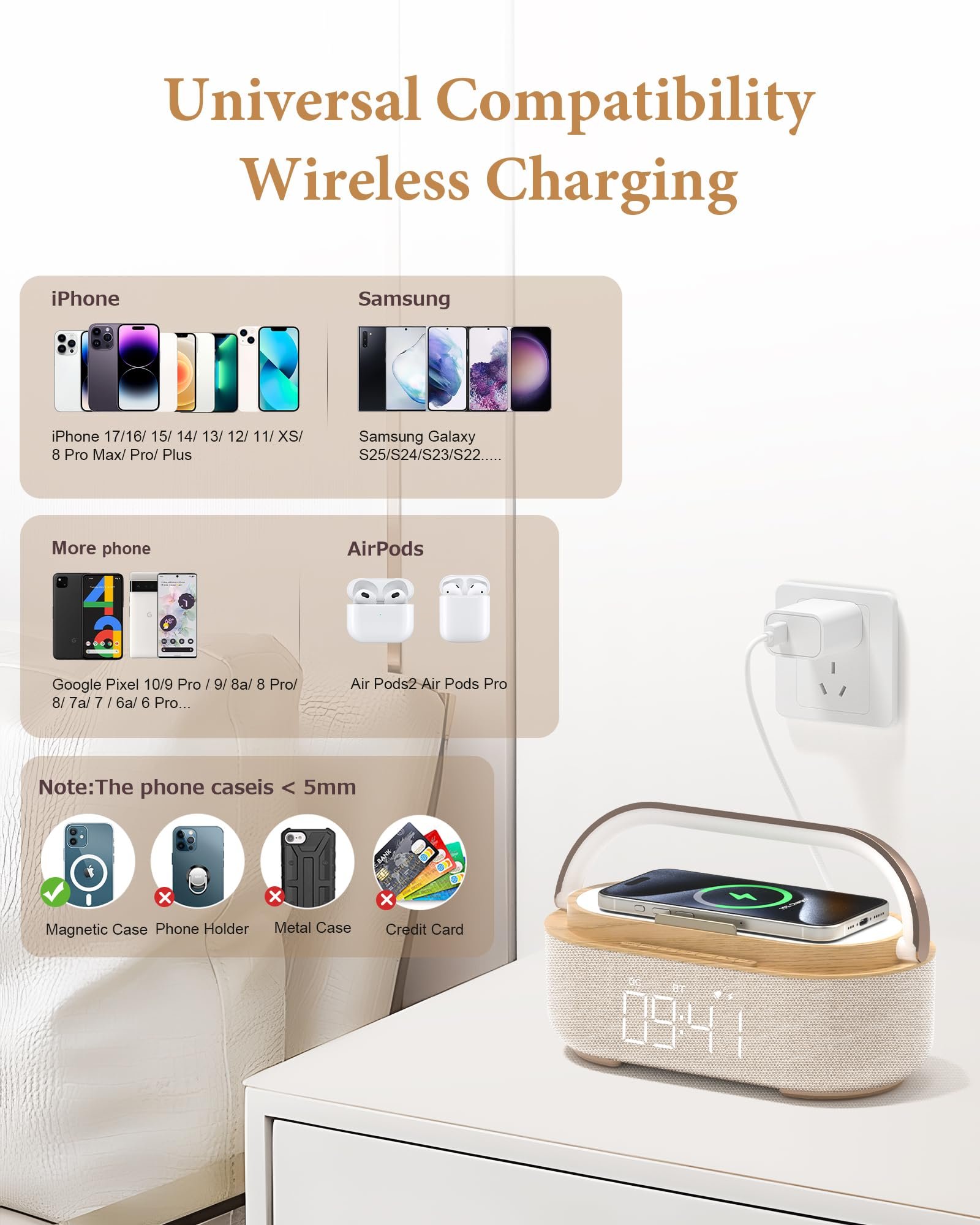 COLSUR Digital Alarm Clock Radio with Wireless Charging, FM Radio with USB Port and Adjustable LED Display, Night Light, Bluetooth, Off Timer Alarm and Phone Holder