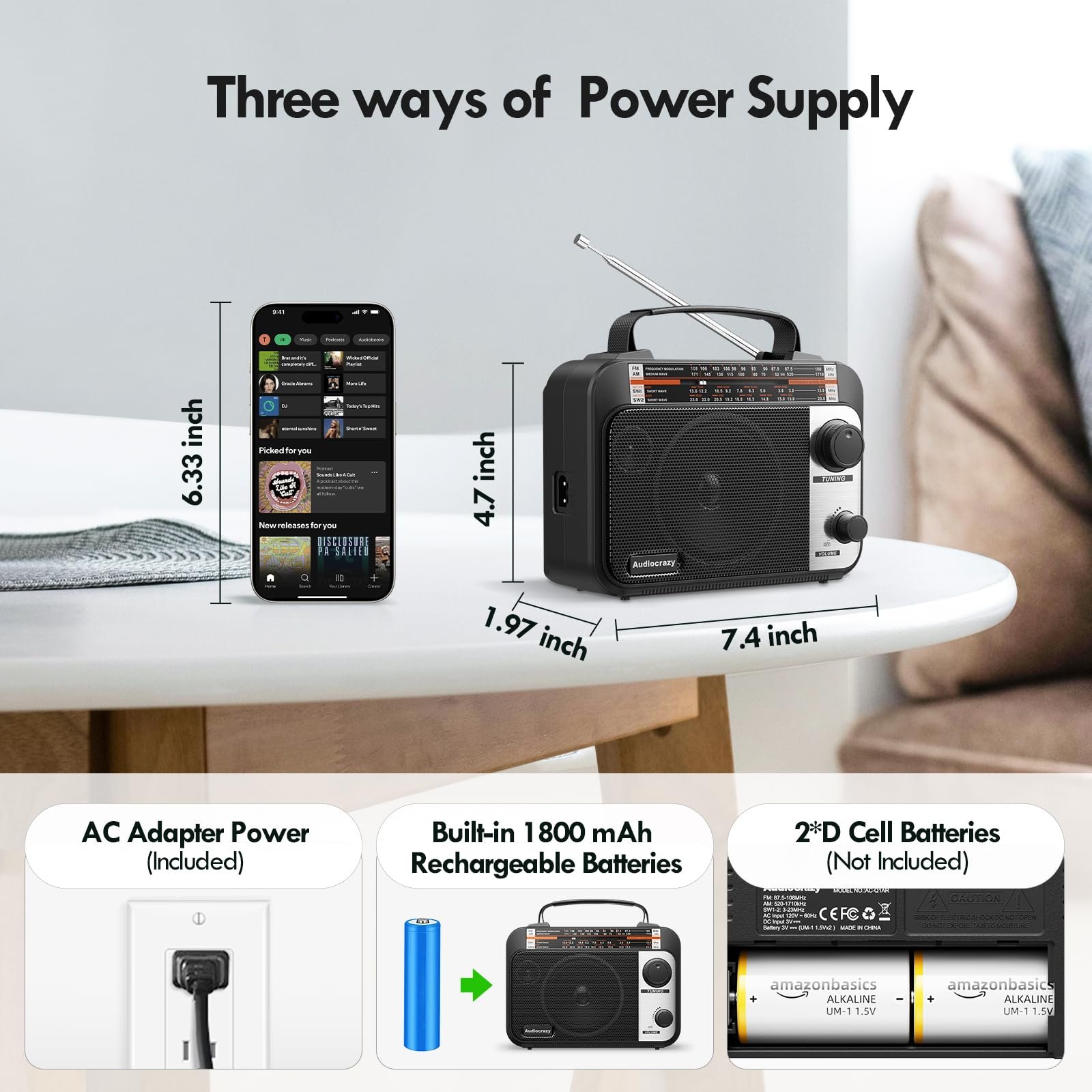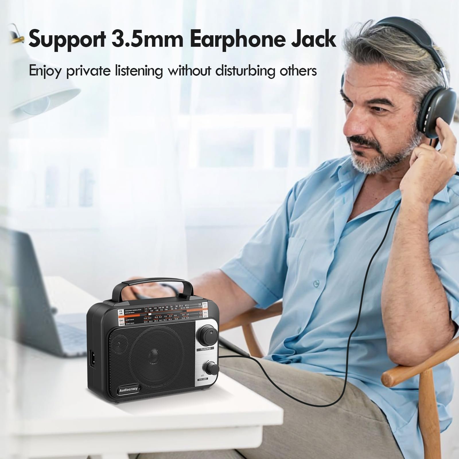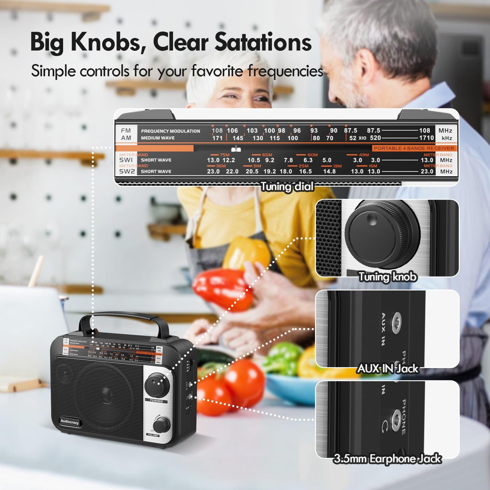 Details: Multi-Band AM/FM/SW1-2 Radio Transistor Radio AC or Battery Operated with Best Reception Big Speaker and Precise Tuning Knob with AUX in & 3.5mm Earphone Jack